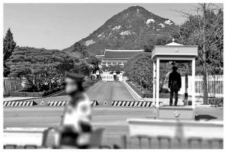 ▲图为韩国警察在总统府青瓦台外戒备。 新华社发