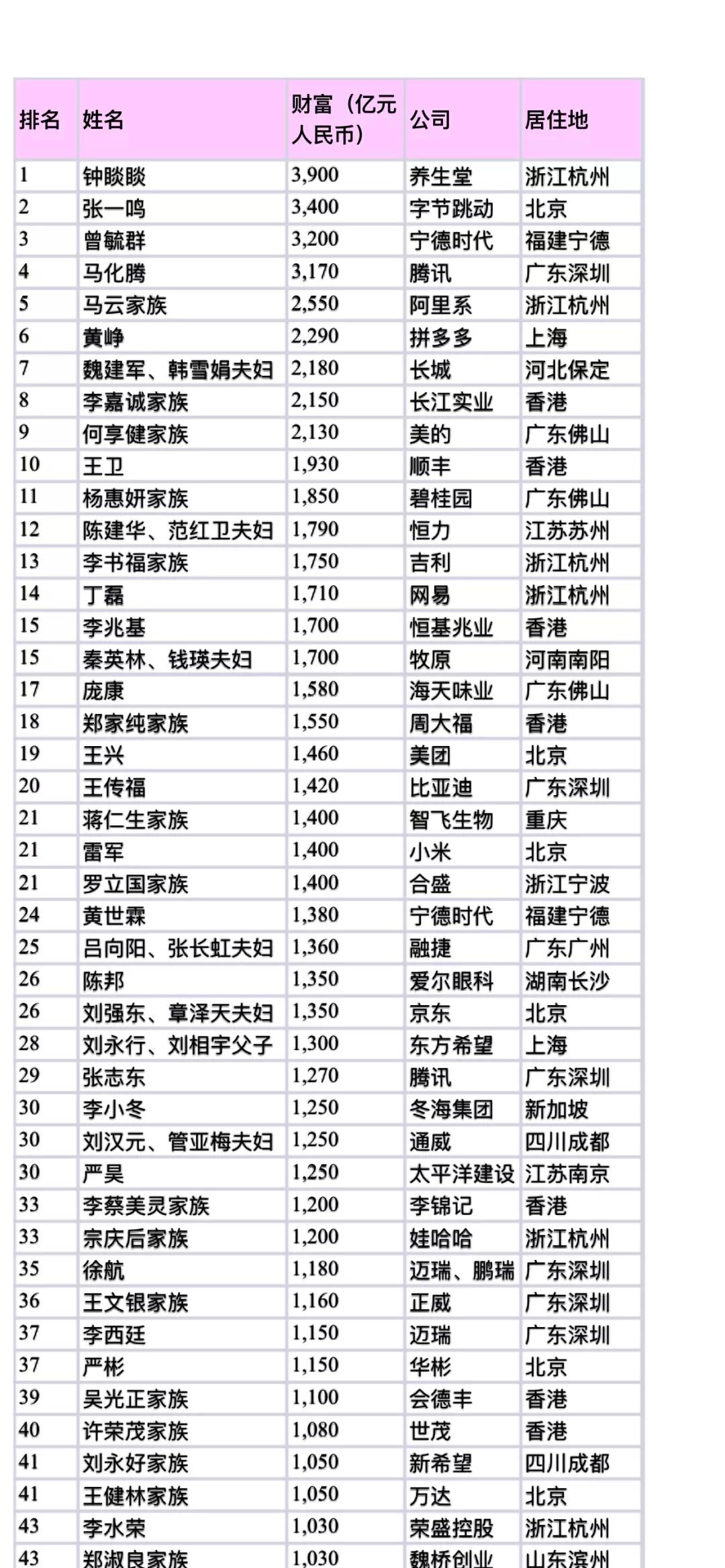 钟睒睒身价3900亿,张一鸣身价涨两倍