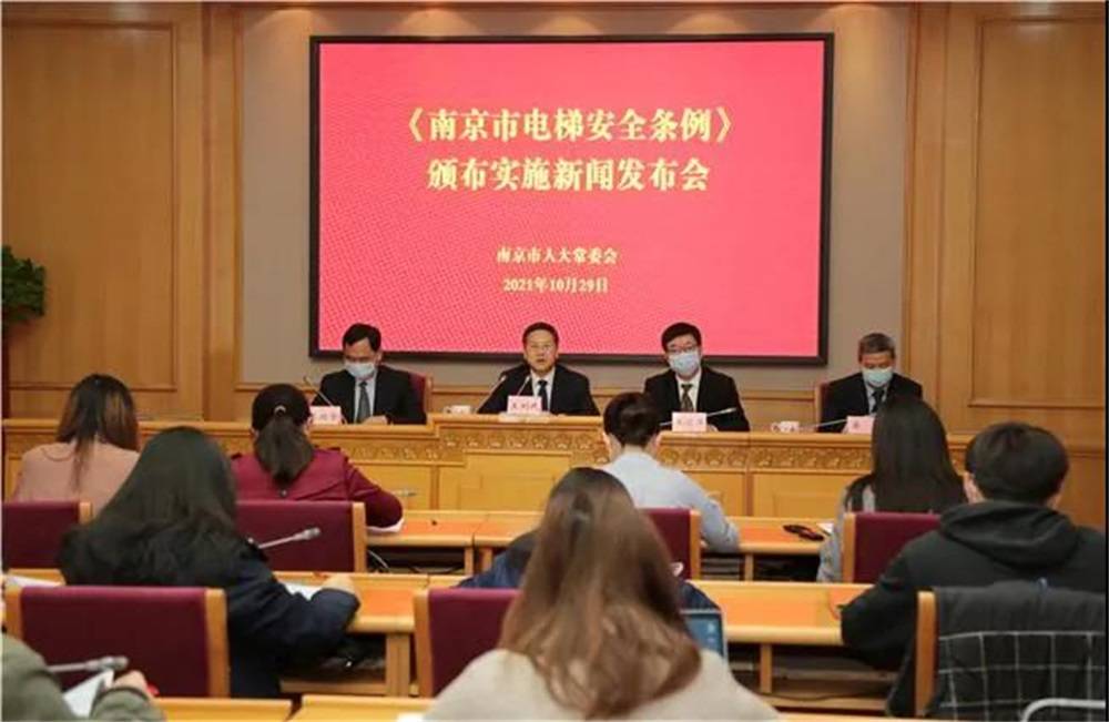 电梯安全关系到千家万户。10月29日,南京市人大常委会举行《南京市电梯安全条例》(以下简称“条例“)颁布实施新闻发布会。市人大相关委员会与南京市市场监督管理局,共同解读立法背景、立法过程、特色亮点和贯彻落实。该条例将于2021年11月1日起正式实施。