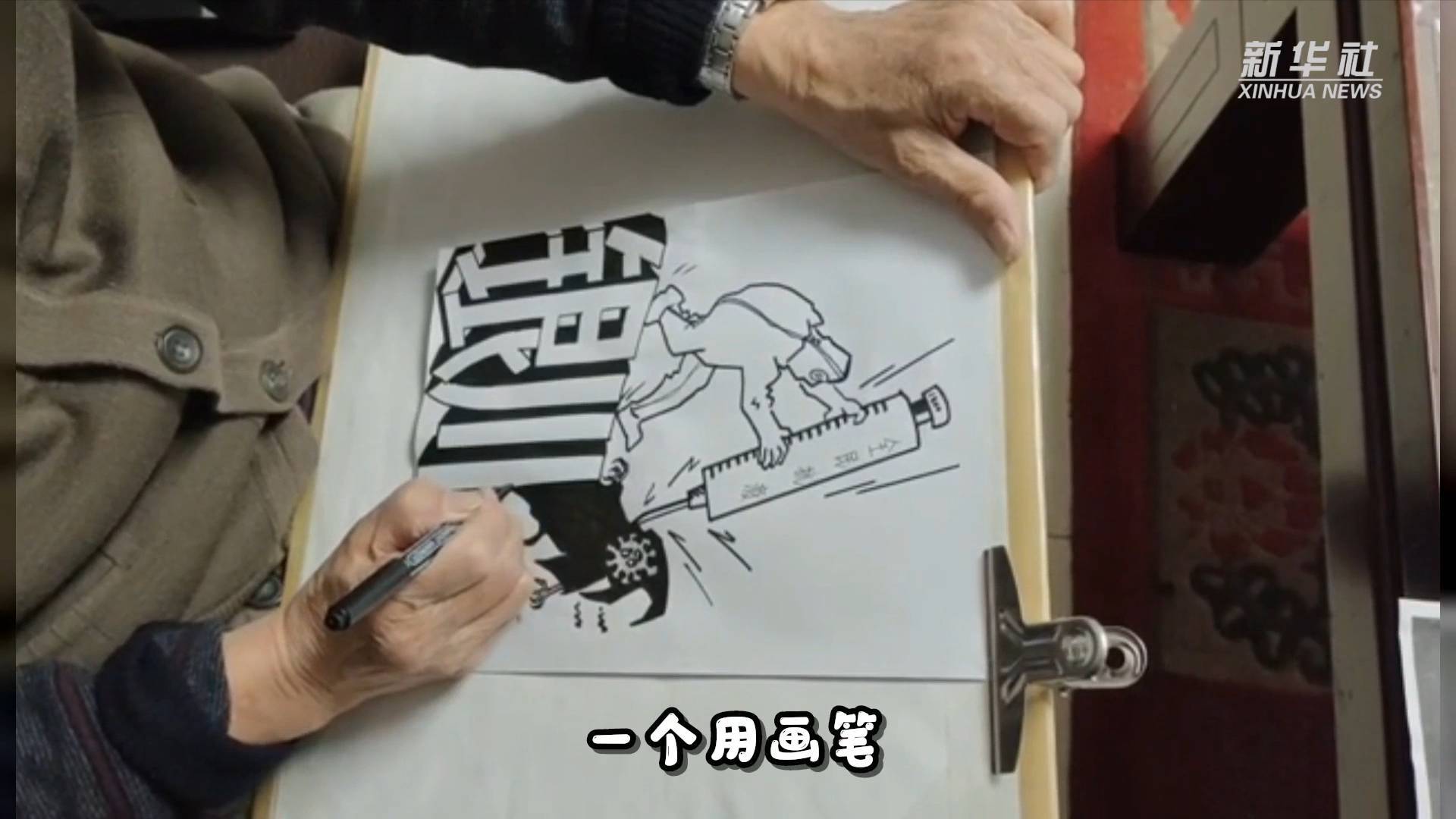 作为一名“资深”志愿者,韩丹以前经常外出参与志愿活动。近几年因腿脚不便,他已经很少出门,也无法亲身参与到疫情防控中,但老人发挥所长,用一幅幅漫画支持疫情防控。韩丹说:“我不能像医生、护士一样,拿着注射器等‘武器’投身疫情防控一线,但我可以把画笔当‘武器’,用这种不同的形式支援抗疫。”