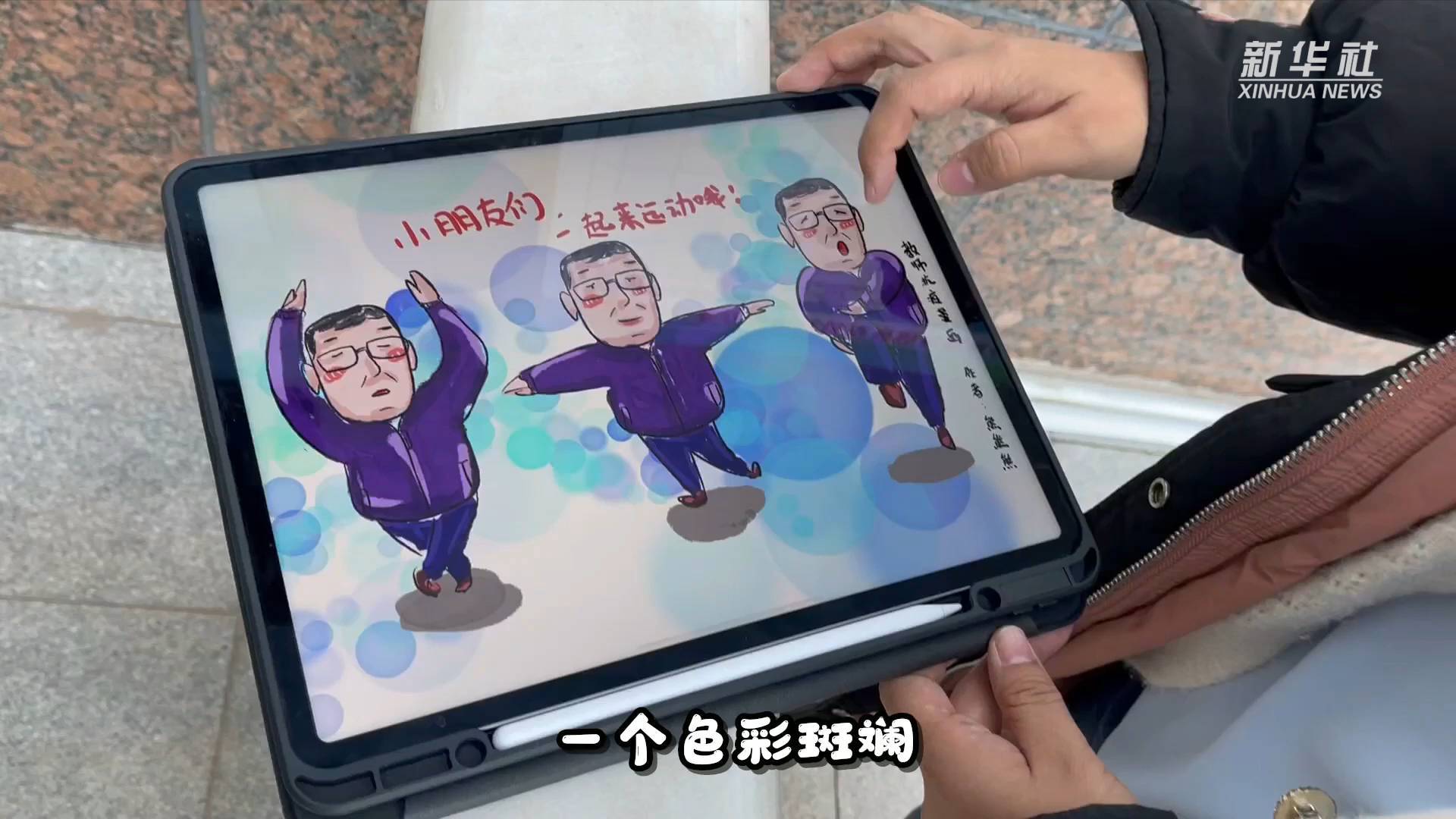 韩丹是一位90岁的老人,熊娟是一名“90后”美术教师;一个用画笔,一个用平板电脑;一个黑白呈现,一个色彩斑斓;一个作品张贴小区门口,一个作品发布朋友圈。