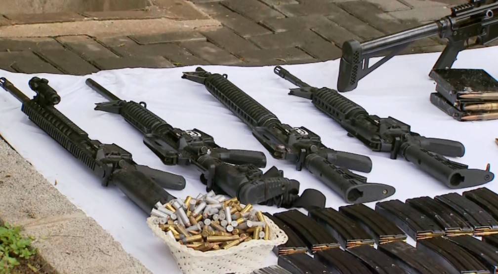 ▲巴西警方缴获大量武器弹药(巴西警方)