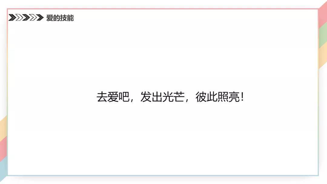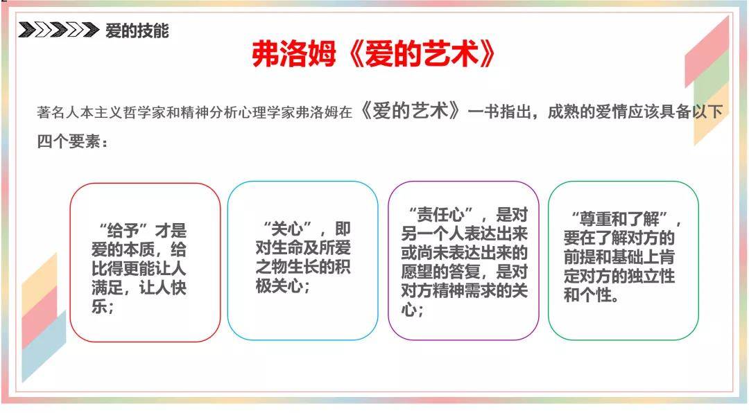 你看,恋爱关系也是人际关系的一部分。我们渴望甜甜的爱情,其实也是在追求深度的人际交往。这是我们生而为人的本能,也是大学生的“人生必修课”。毕竟,谁不想勇敢追爱,拥抱圆满的人际关系。最后来看爱的技能,你学会了吗?