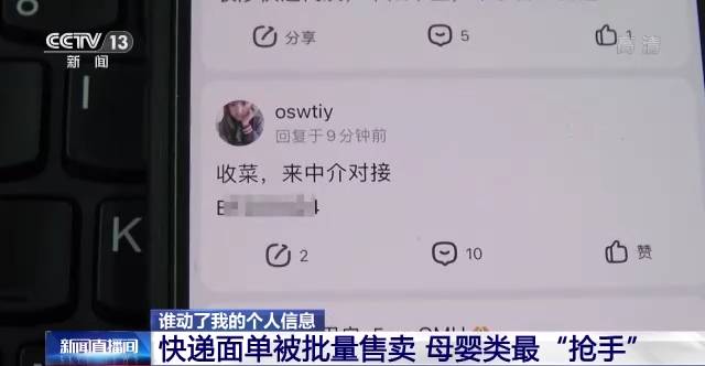 快递面单被批量售卖 母婴类最“抢手”