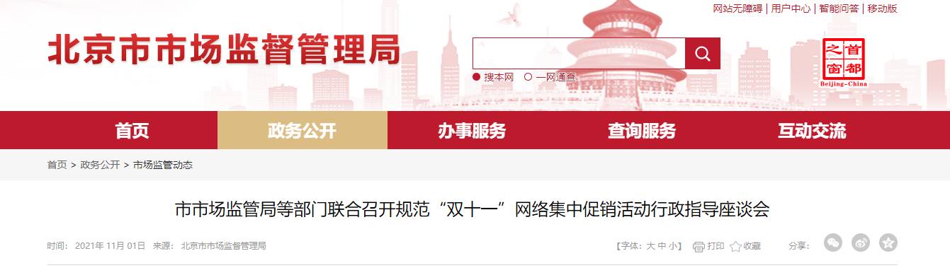 ▲15个部门联合召开规范“双十一”网络集中促销活动行政指导座谈会。 图片来源:北京市市场监督管理局