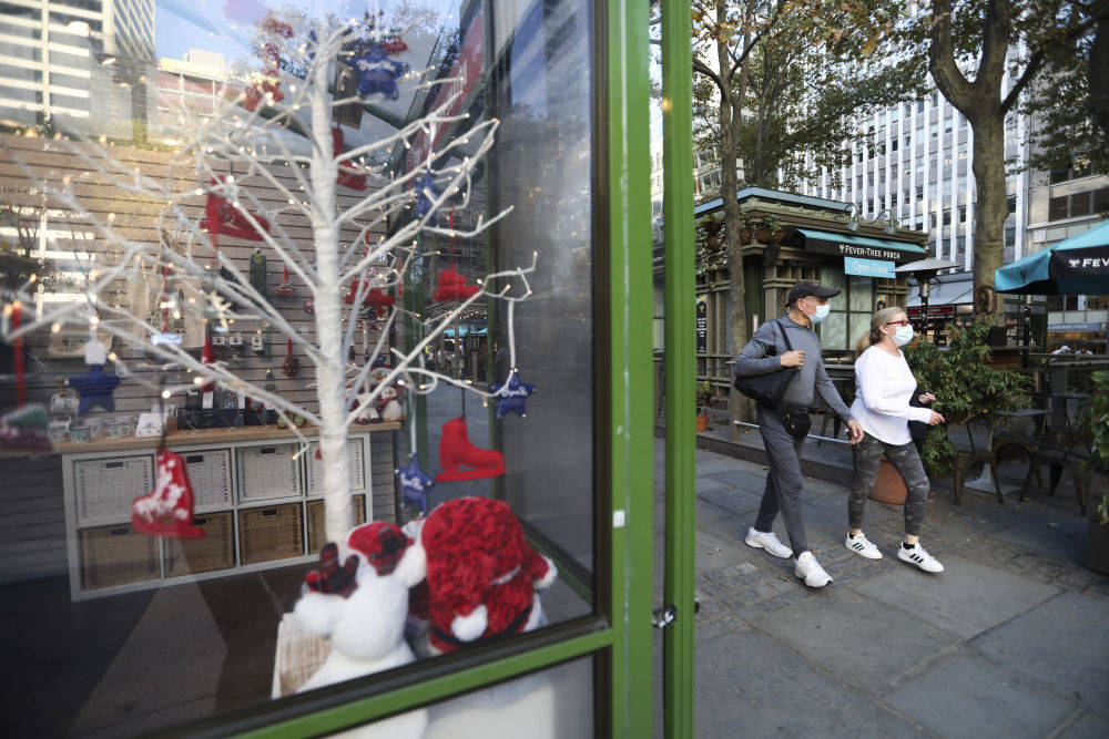 ▲2021年11月9日,在美国纽约,人们在冬季集市休闲、购物。