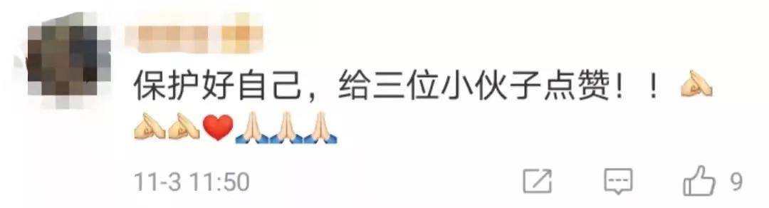 网友纷纷为3个小伙点赞,“你们都很棒”、“一定要保护好自己”。