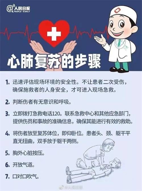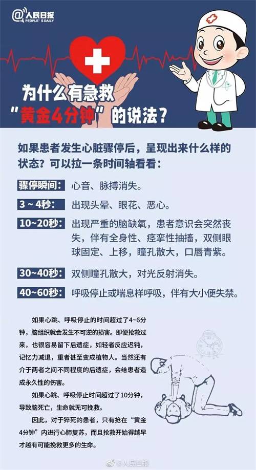 值得注意的是,当心脏骤停,有黄金四分钟的说法。掌握正确的“心肺复苏”和“人工呼吸”方法极其有必要。