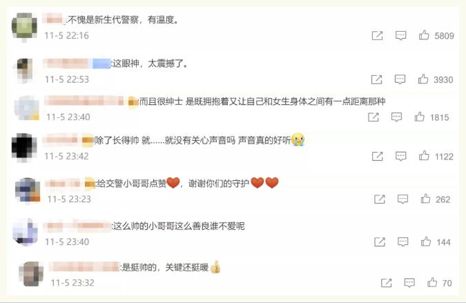 网友们纷纷给张少东点赞,“这位警察,有温度”、“又暖又帅,安全感爆棚”、“警惕的眼神很震撼”、“很绅士,和女子间还保持着距离”。