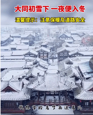 同样迎来降雪的山西大同,雪景美不胜收,有网友说:“一下雪,大同就变成了平城”。