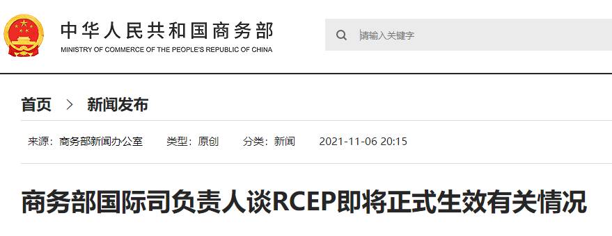 ▲商务部国际司负责人谈RCEP即将正式生效有关情况。 图片来源:商务部官网
