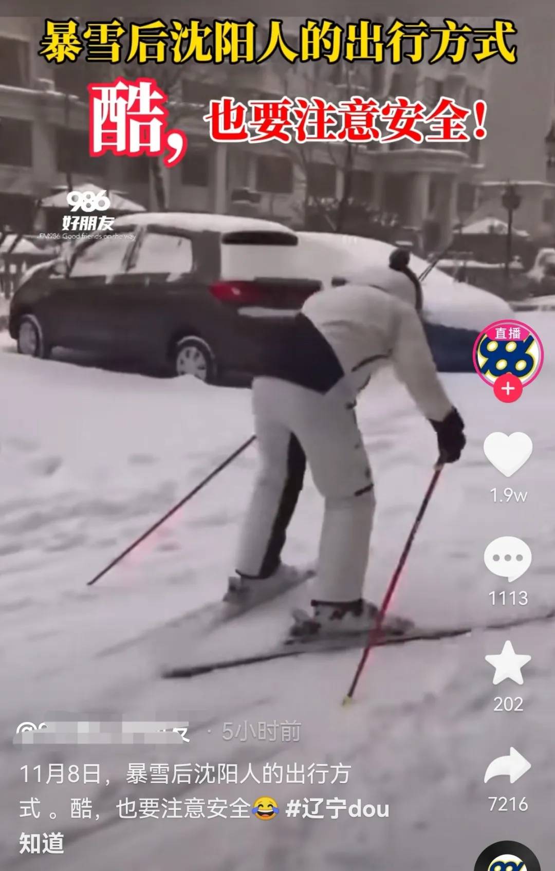 济南人的快递柜被大雪封印住了、沈阳人已经无法正常出门,需要借助滑雪工具……