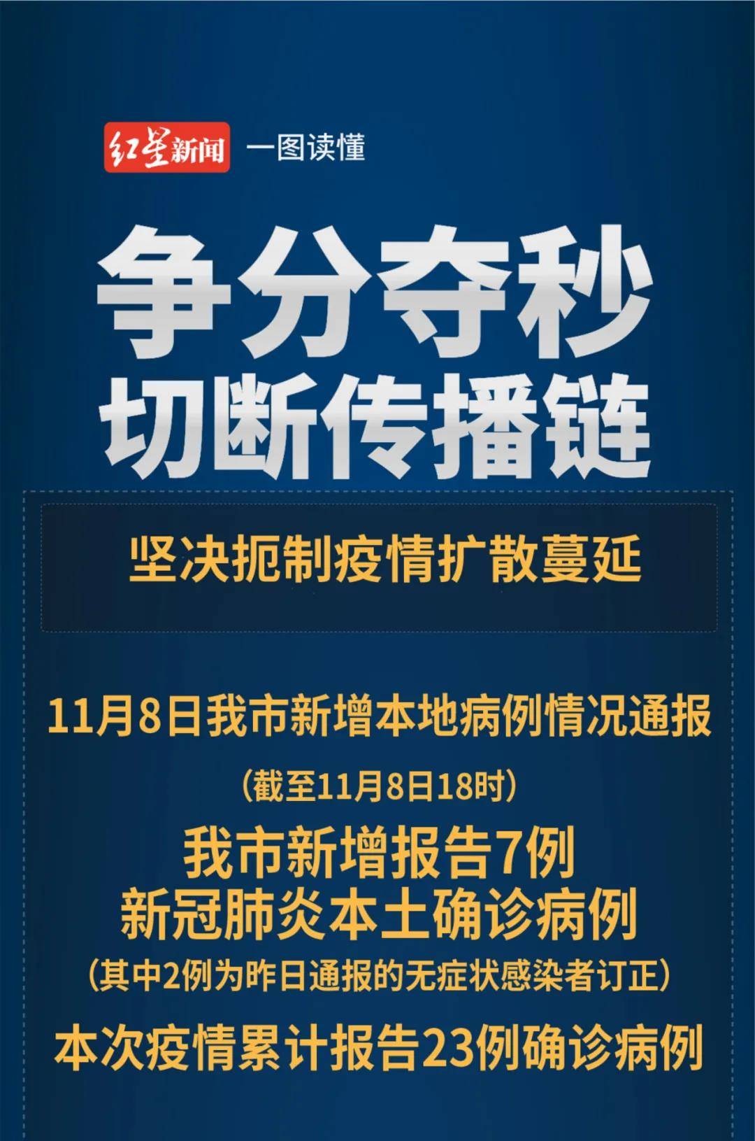 截至11月8日24时,本地累计在管密接2757人、次密9097人,核酸检测均为阴性;累计排查外地密接371人、次密586人,均已协查管理。
