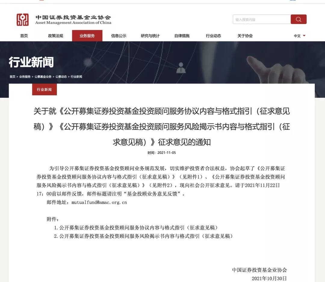 11月5日,中国证券投资基金业协会下发《公开募集证券投资基金投资顾问服务协议内容与格式指引(征求意见稿)》,对基金投顾业务作出各方面的释义与规范。