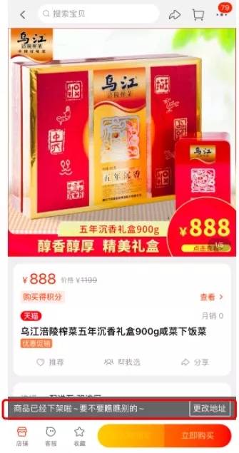 关于下架的原因,乌江榨菜淘宝官方旗舰店客服说:“现在卖完了”,并表示,暂时未接到通知是否会再上架。