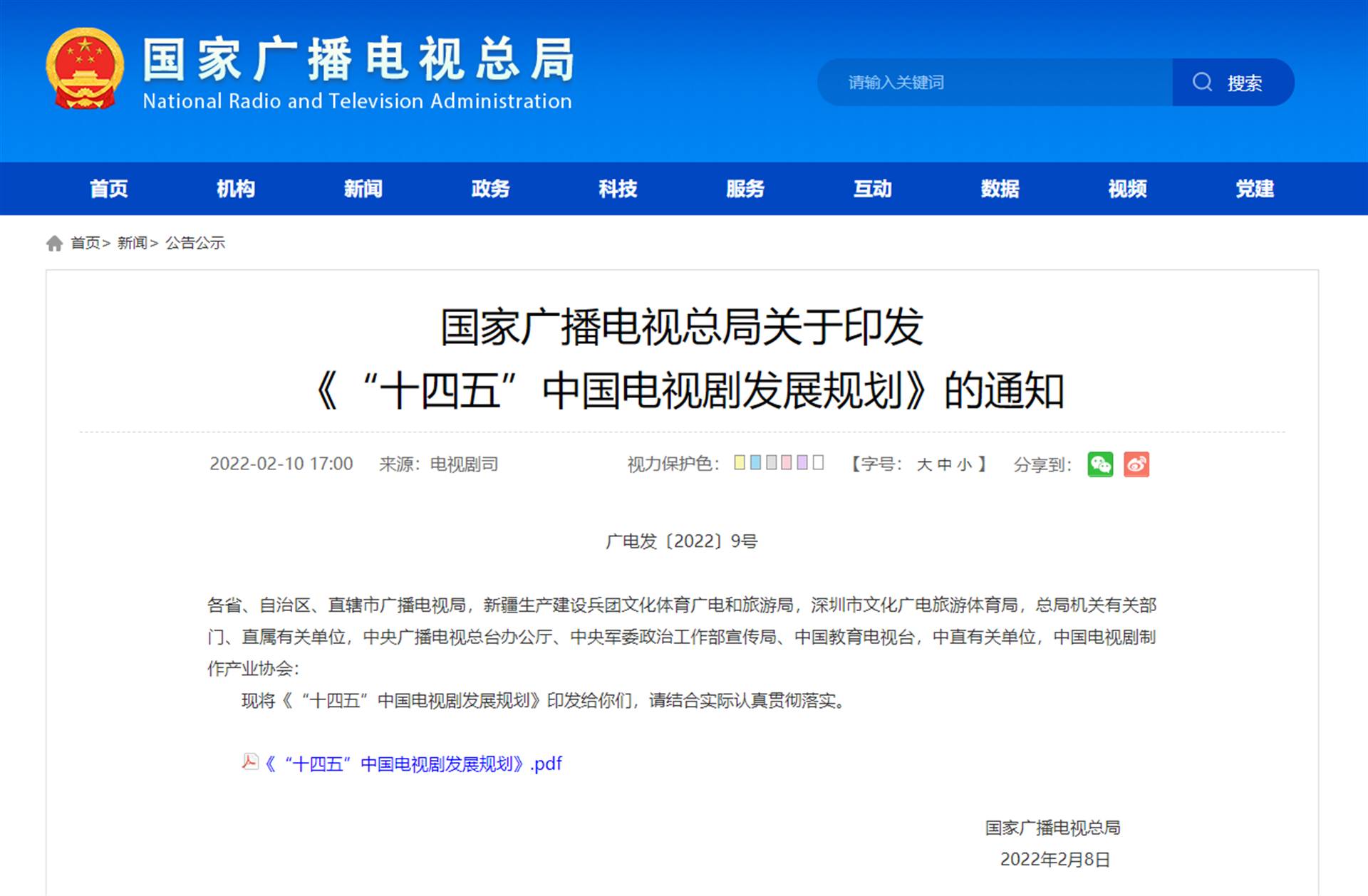 据“国家广播电视总局”网站10日消息,《“十四五”中国电视剧发展规划》于日前印发。