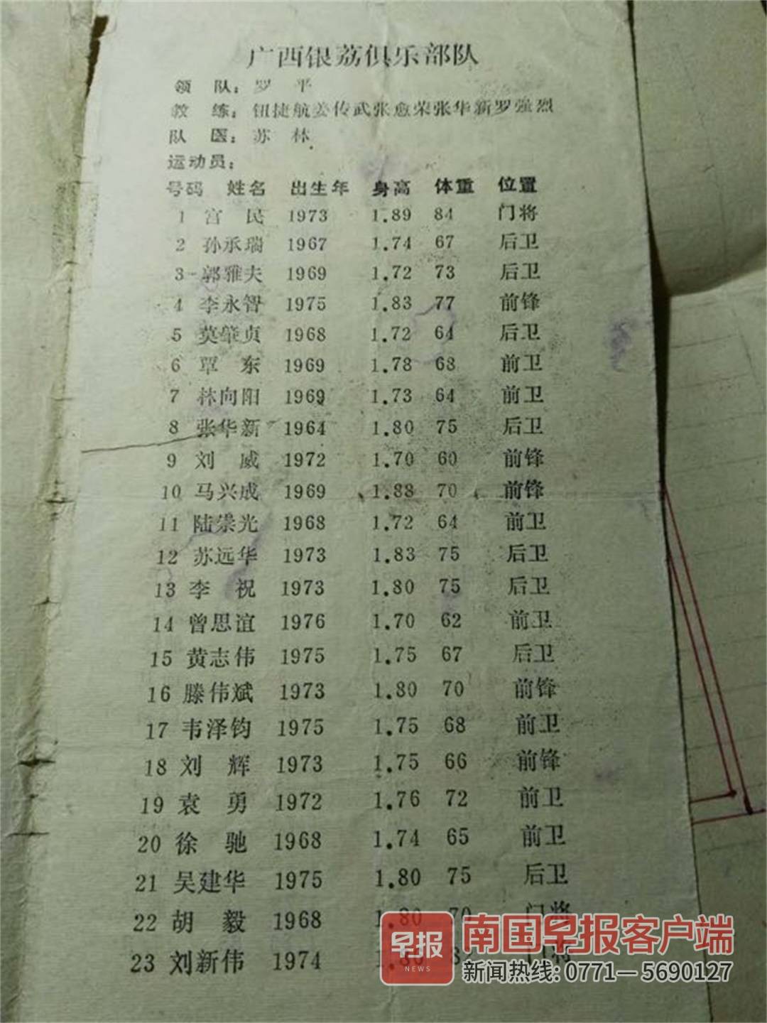 ▲上世纪90年代初的广西银荔队,身上有无数广西球迷的回忆。 受访者供图