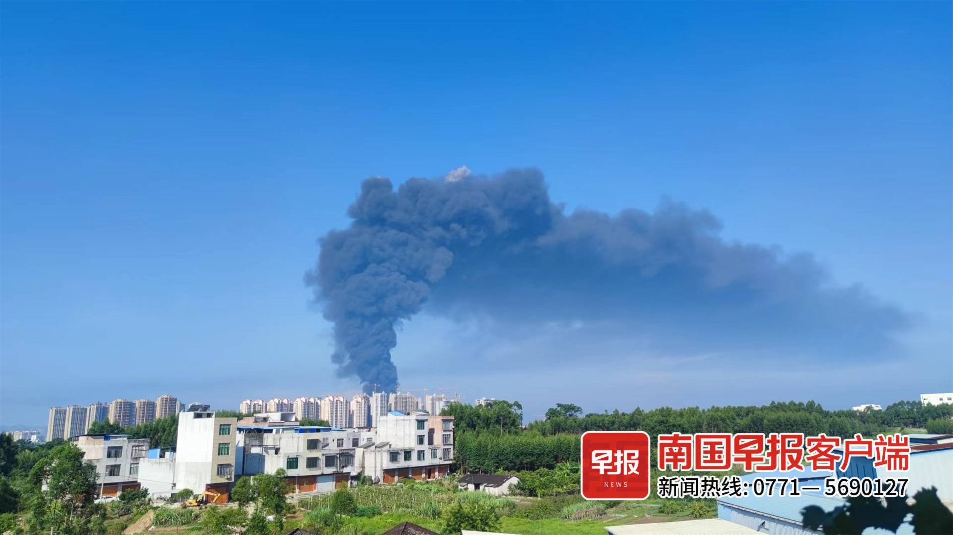 8月8日上午7时许,南宁市宾阳县潘村一仓库突发火情,腾空的浓烟引发周边居民关注。南宁消防赶赴现场扑救,10时许火势被扑灭,无人员被困。据悉,燃烧物质为塑料制品。