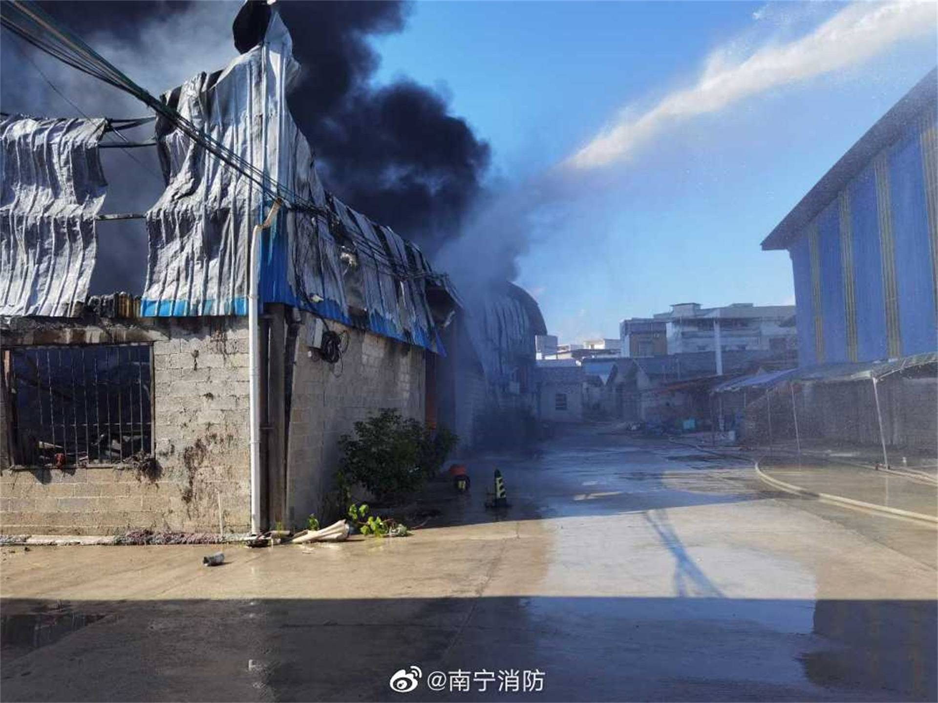 ▲上午9时许,火势已控制在一定范围内。图源南宁消防官方微博