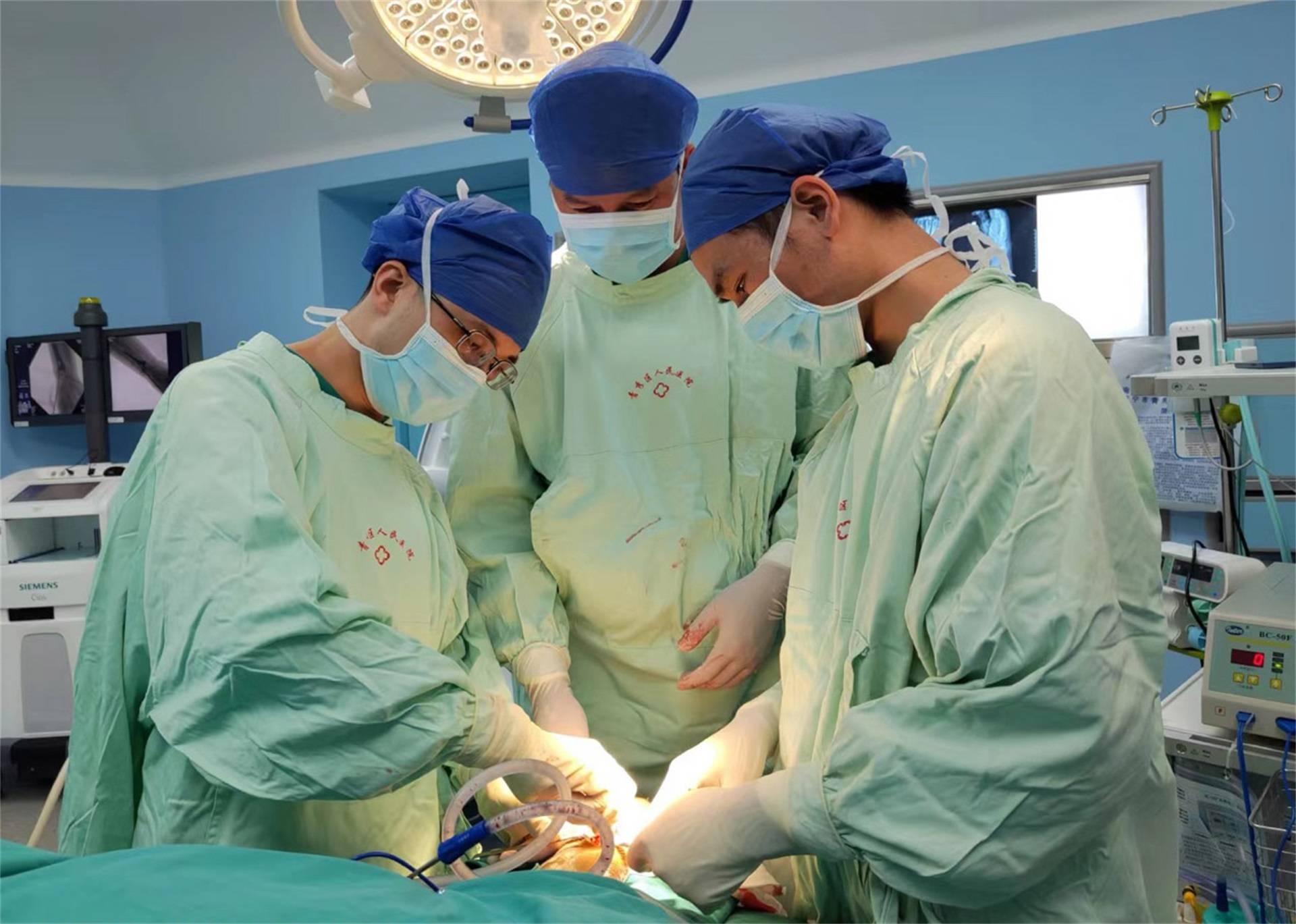 ▲黎裕明(中)给基层医院带去了新的手术方式和治疗理念。