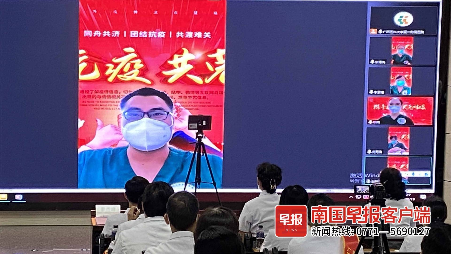 ▲广西医科大学第二附属医院在医师节庆祝活动上现场连线远在凭祥的抗疫医疗队。本文图片均为南国早报客户端记者 张若凡摄