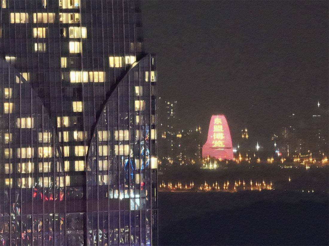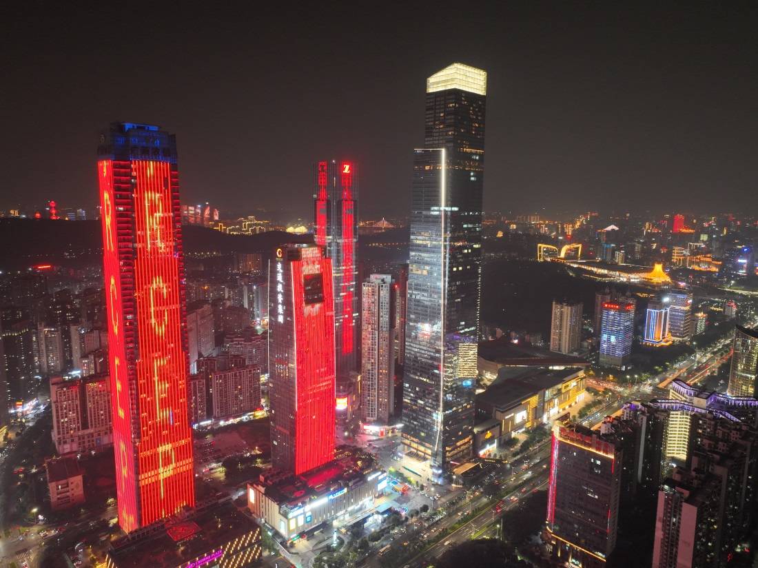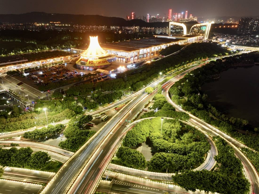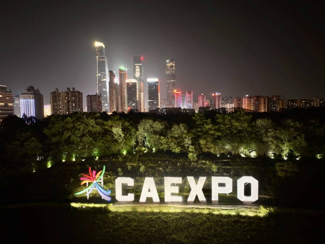 ▲东盟商务区一带灯火辉煌。