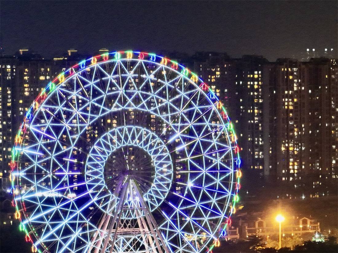 ▲摩天轮灯光闪烁。