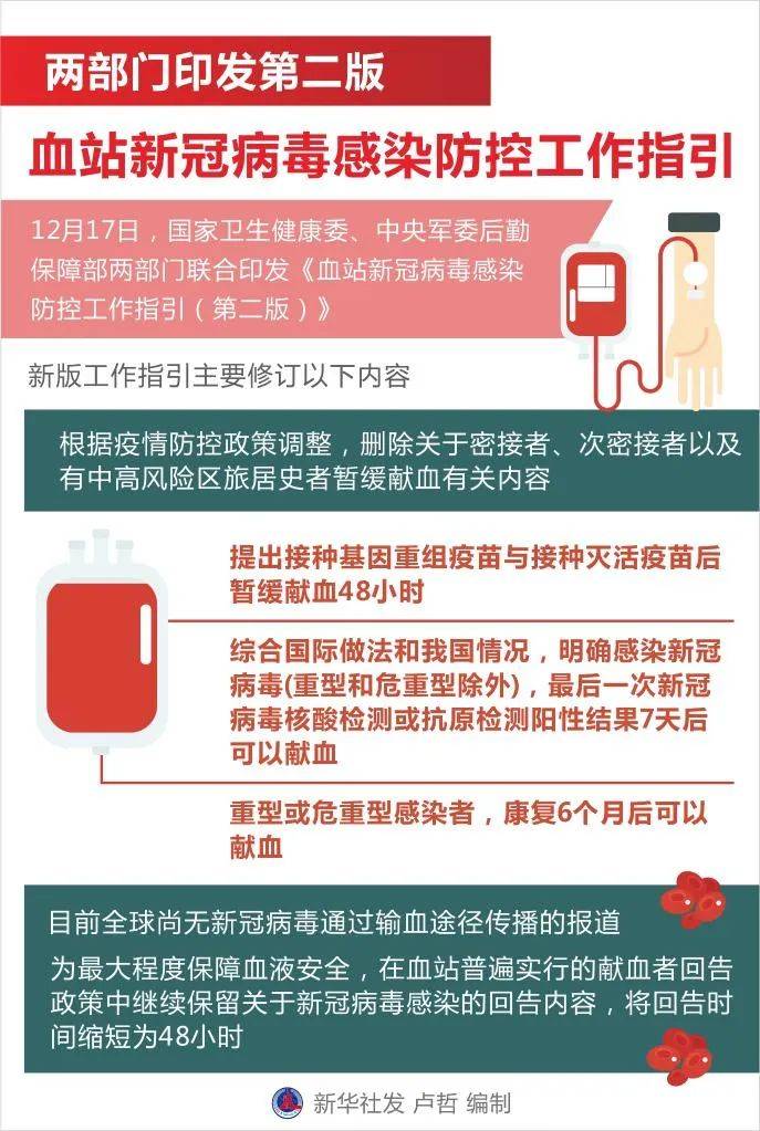 一是根据疫情防控政策调整,新版工作指引删除关于密接者、次密接者以及有中高风险区旅居史者暂缓献血有关内容。
