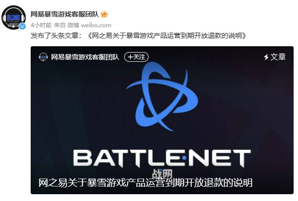 2月1日,网易暴雪游戏客服团队发布了《网之易关于暴雪游戏产品运营到期开放退款的说明》。