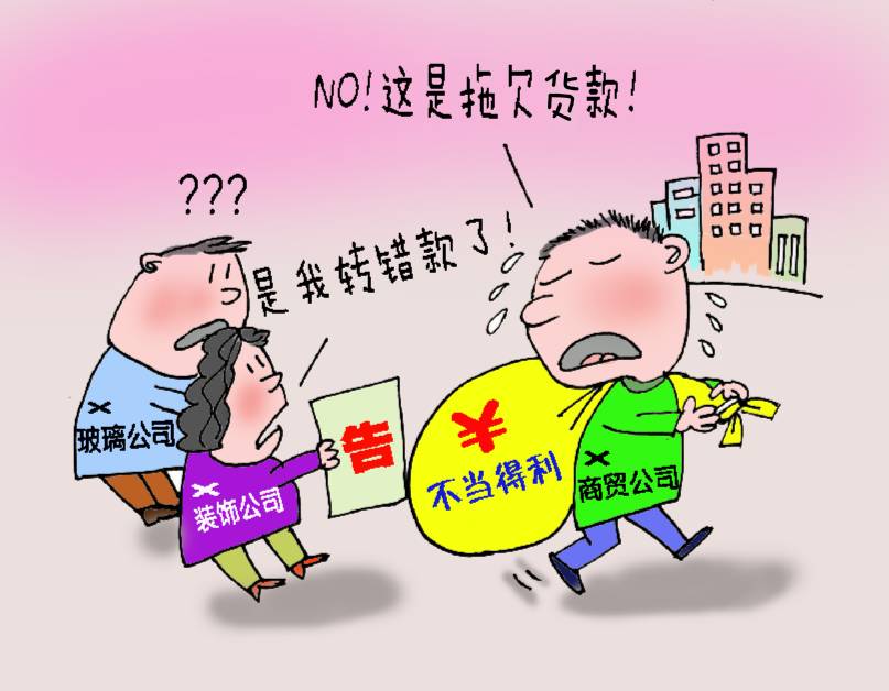 ▲商贸公司拒不归还收款,构成不当得利。定坚画