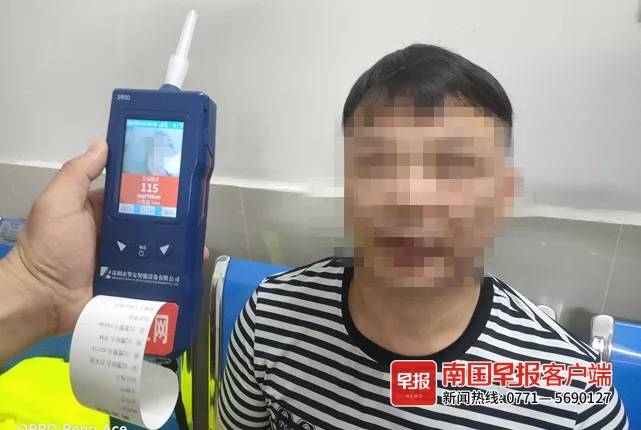 ▲交警对司机熊某进行呼气式酒精检测。 本文图片均由恭城交警提供