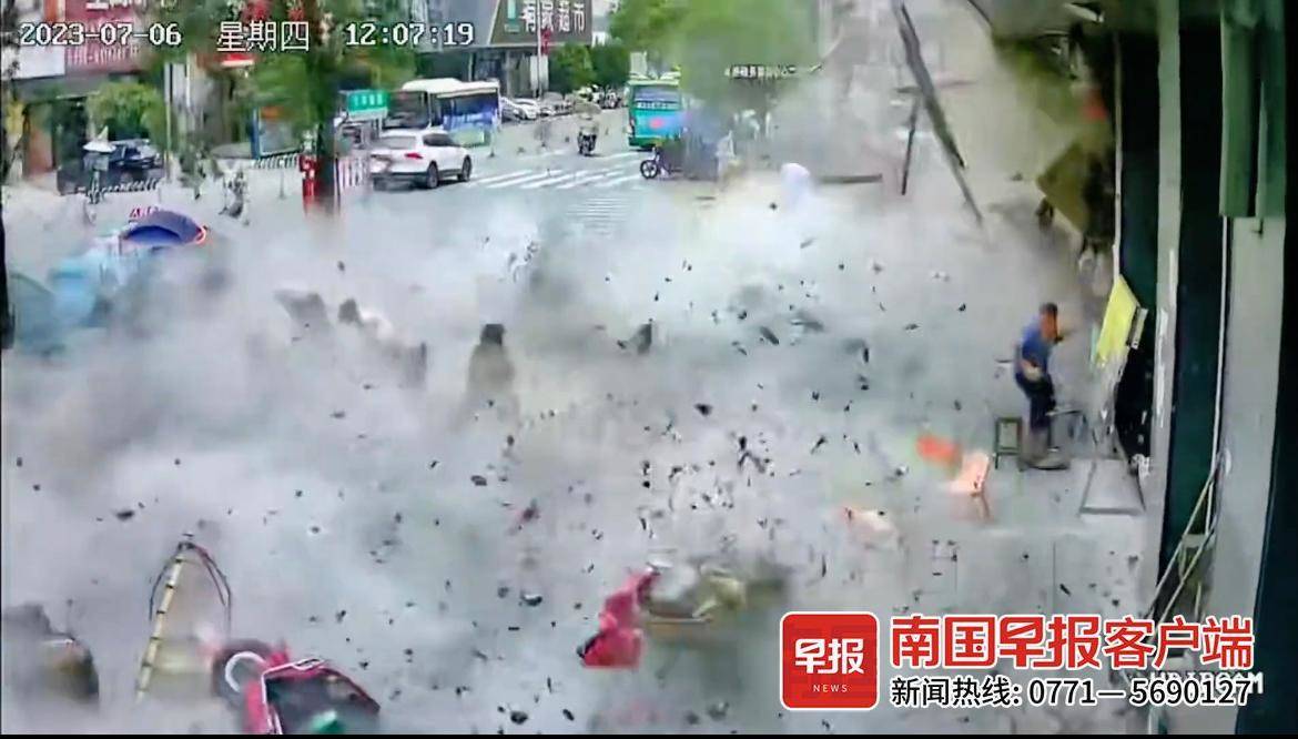 一名目击者说,她当时刚好开车路过现场附近,看见楼下一家超市门头都被掉落瓷砖砸坏一角,不少停放在路边的电动自行车也遭“牵连”。“现场就像爆炸过一样。”这名目击者说。