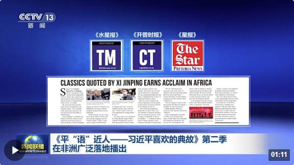 8月22日出版的南非三大主流报刊——南非《星报》《开普时报》《水星报》在头版显著位置发表文章,对《平“语”近人——习近平喜欢的典故》第二季在非洲广泛落地播出作了报道。各界人士普遍认为节目的播出对非洲各国领略习近平主席治国理政智慧,了解新时代中国发展变化具有重要作用。