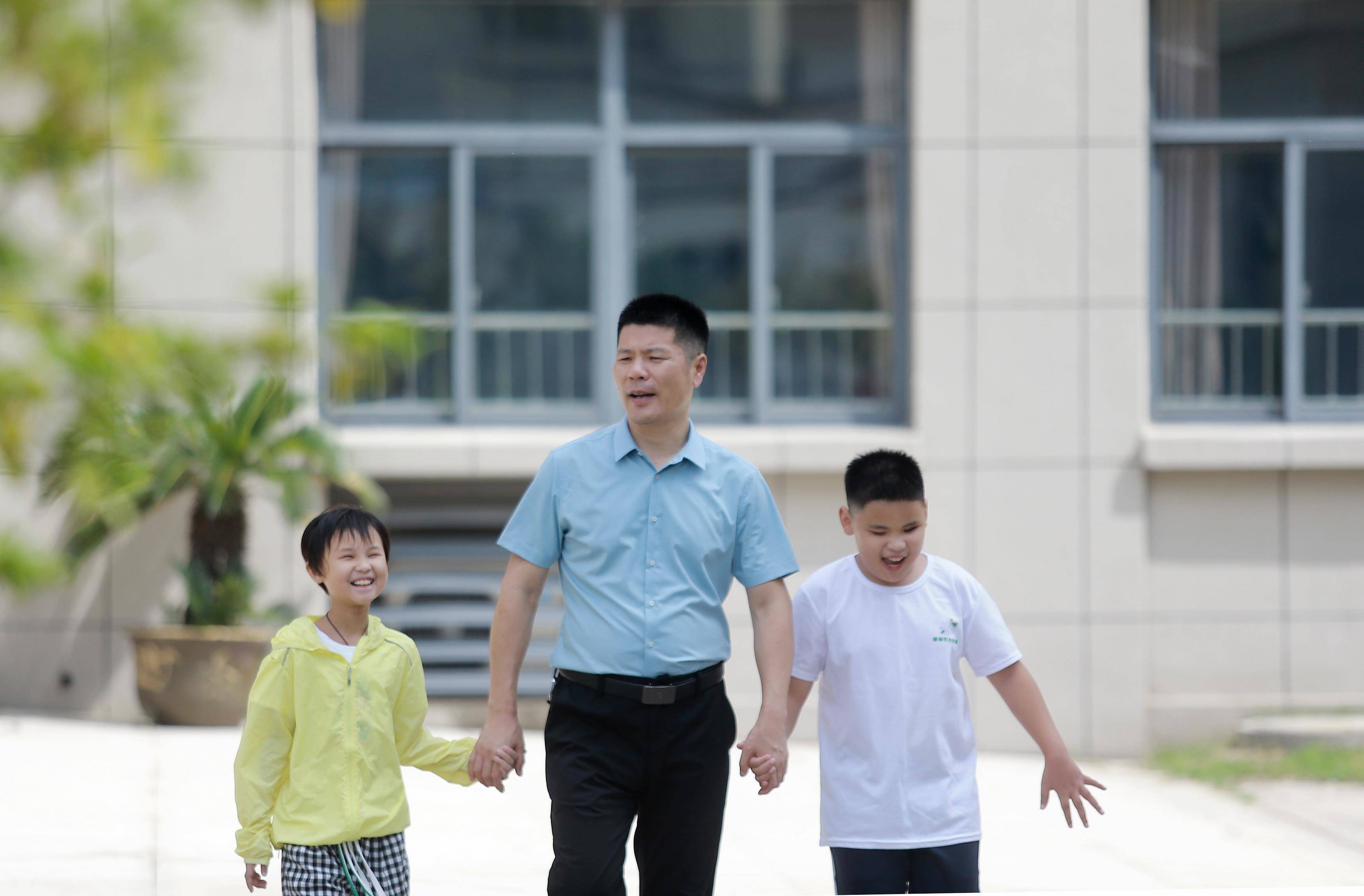 ▲2023年9月7日,江苏省扬州市特殊教育学校的孩子们和老师一起在校园里散步。