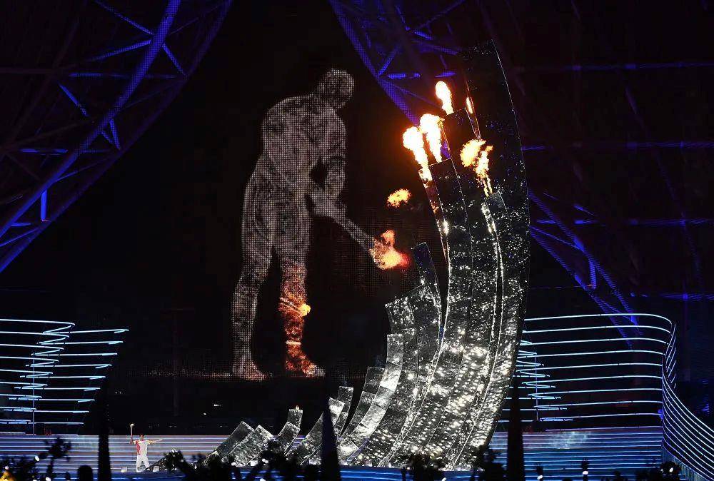 ▲“数字火炬手”点燃象征亚洲大团结的亚运之火。