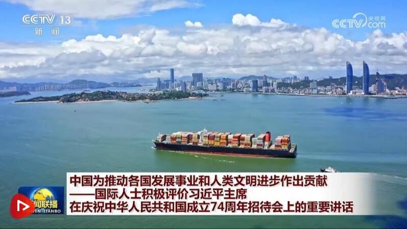 央视网消息(新闻联播):国际人士积极评价习近平主席在庆祝中华人民共和国成立74周年招待会上的重要讲话。他们表示,中国为推动全球发展事业和人类文明进步作出重要贡献,愿同中国携手,向着构建人类命运共同体的正确方向,开创人类更加美好的未来。