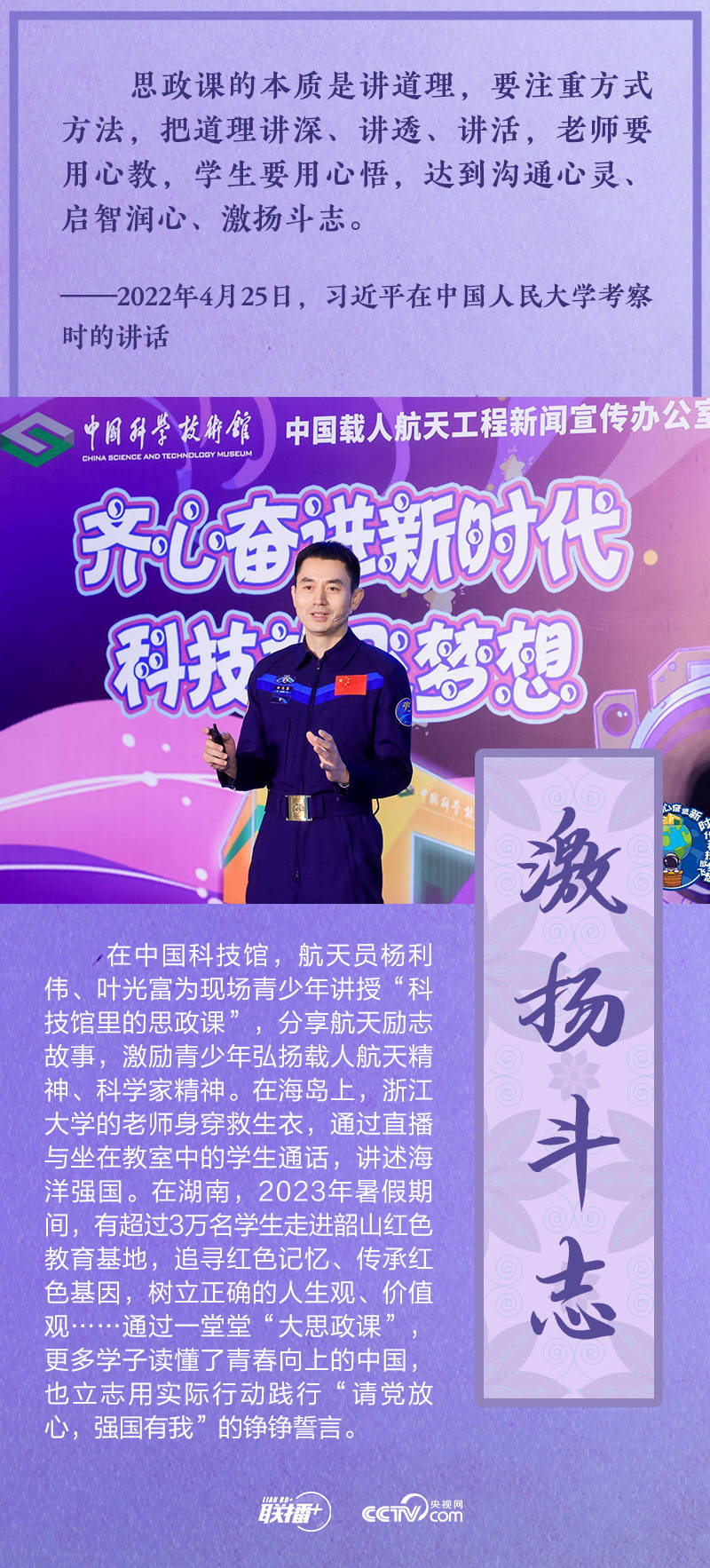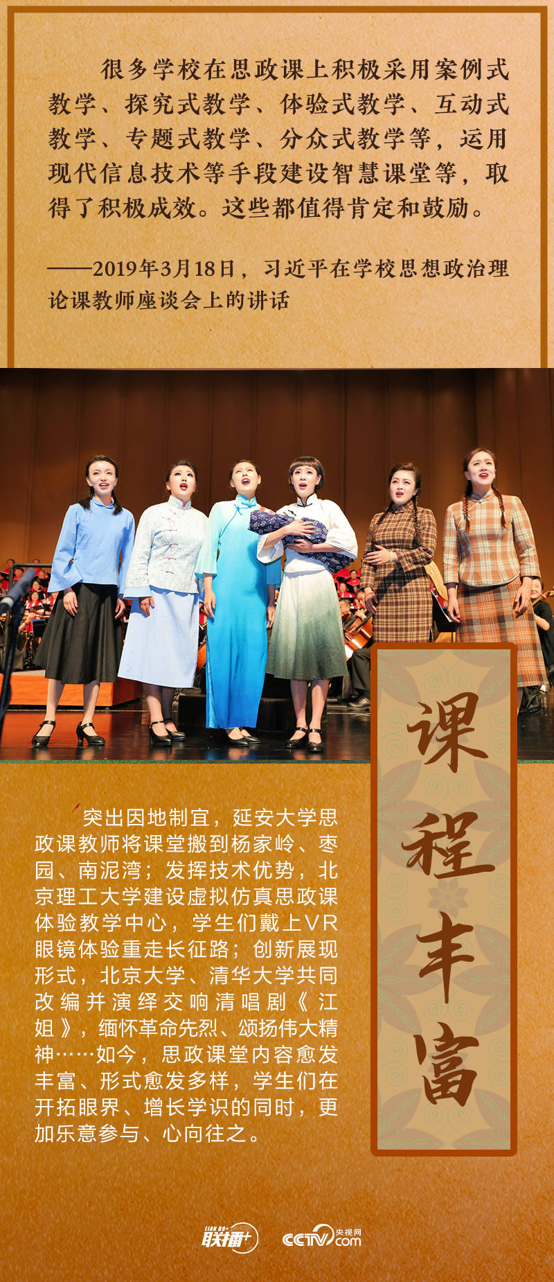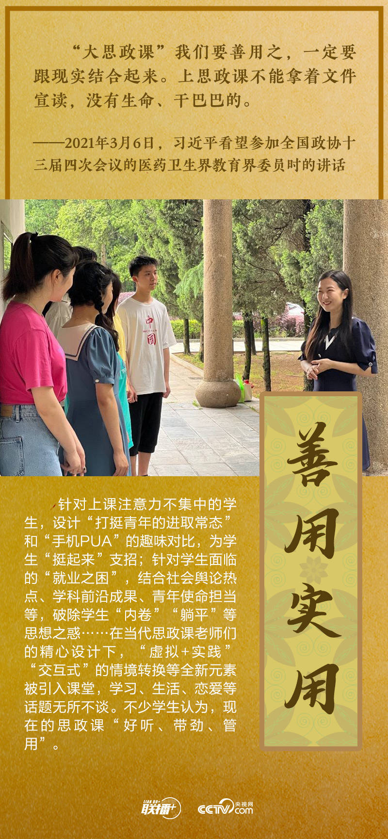 联播+ “上思政课不能拿着文件宣读,没有生命、干巴巴的”“要善于利用国内外的事实、案例、素材,在比较中回答学生的疑惑”“要运用新媒体新技术使工作活起来”“让思政课成为一门有温度的课”……办好思政课,总书记一向十分关心。