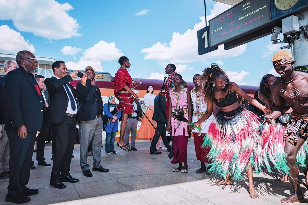 ▲多国驻肯使节在肯尼亚内罗毕的蒙内铁路内罗毕站观看文艺演出(2023 年 10 月 6 日摄) 王冠森摄 / 本刊
