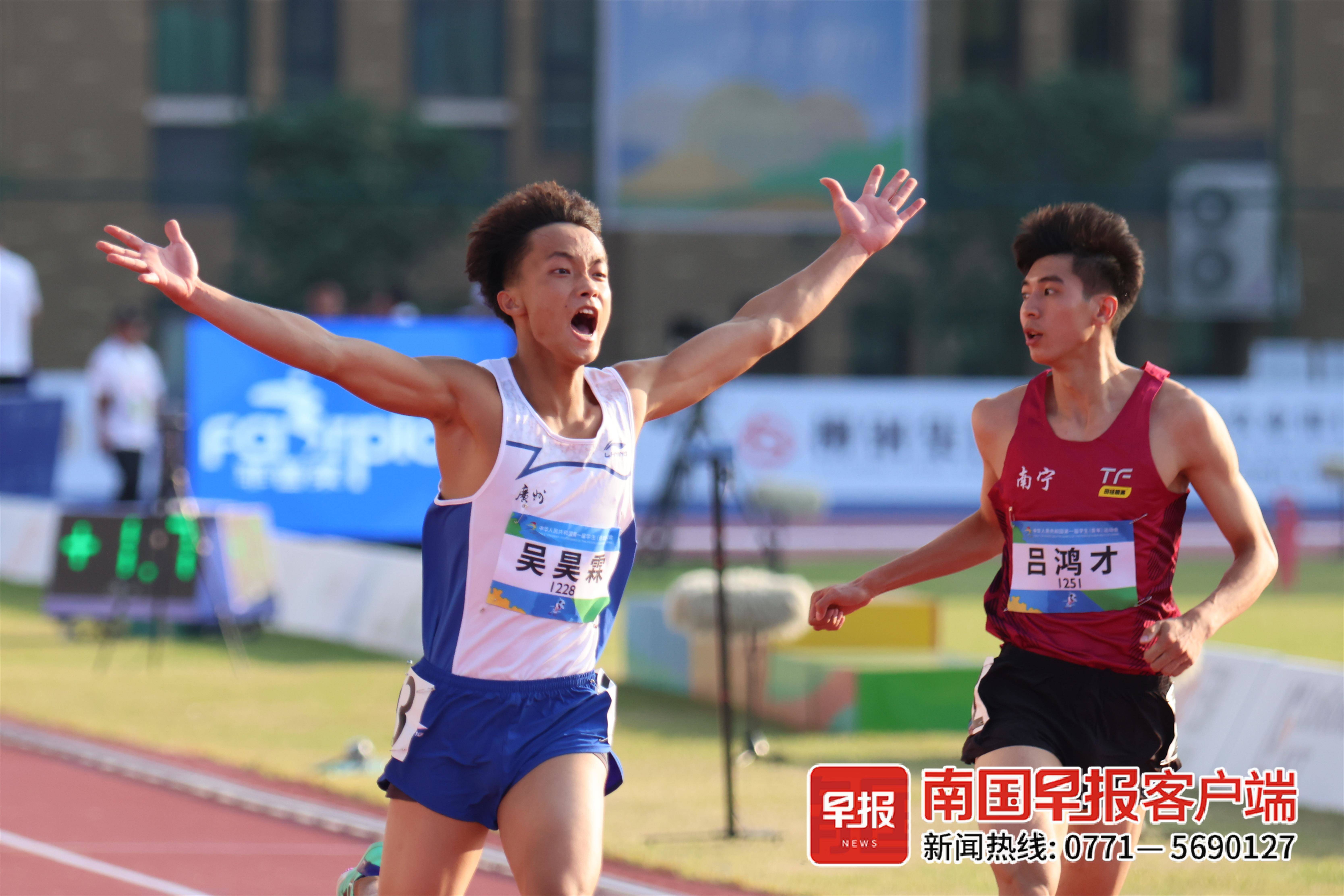 ▲广州队选手吴昊霖拿下男子100米冠军。