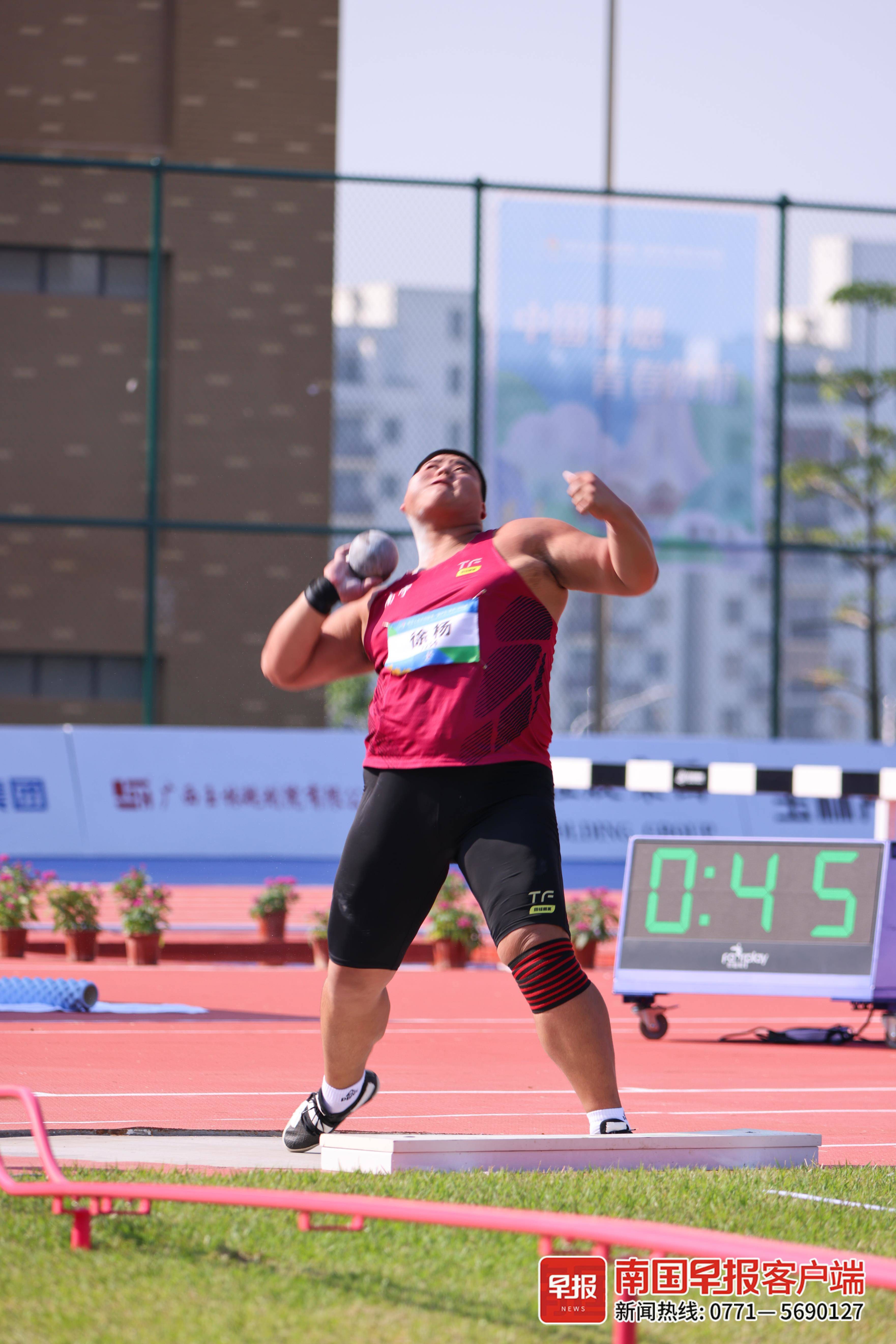 ▲南宁队的徐杨在男子铅球比赛中获得铜牌。