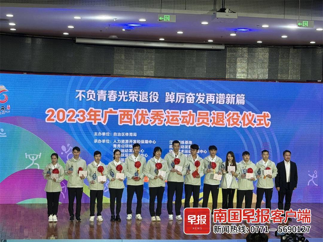 活动由自治区体育局主办,这是广西首次举办大型优秀运动员退役仪式。活动现场,自治区体育局为退役优秀运动员颁发了退役证书与纪念奖牌,感谢他们为广西体育事业奉献的青春和力量,鼓励退役运动员重整行装再出发,为建设壮美广西、体育强国作出更大贡献。部分退役运动员代表现场分享了他们的创业故事,告诉广大退役运动员,新的赛道依然大有可为。