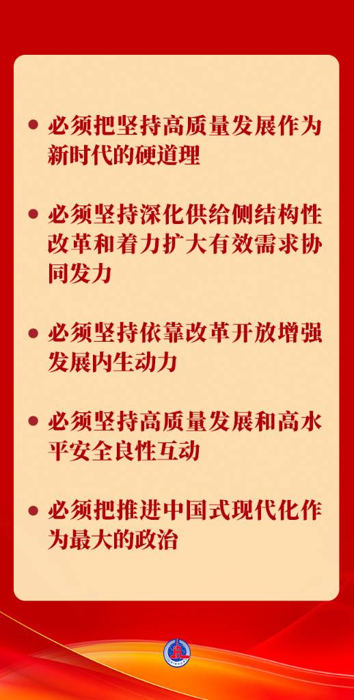 “五个必须”,进一步丰富和发展了习近平经济思想,为以中国式现代化全面推进强国建设、民族复兴伟业指明了前进方向。