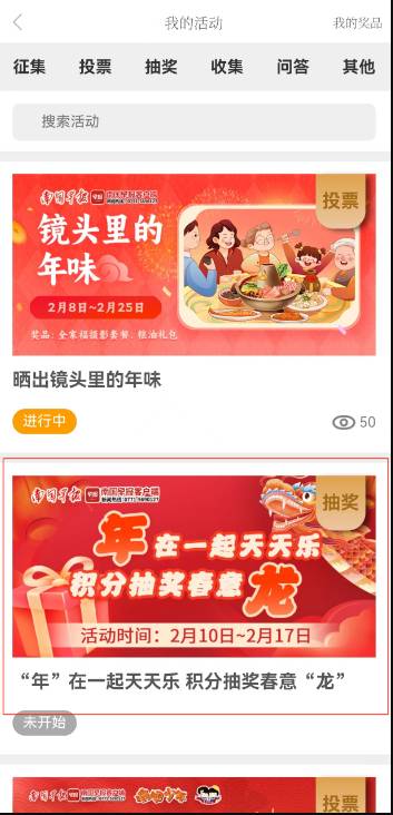 “年在一起天天乐 积分抽奖春意龙”