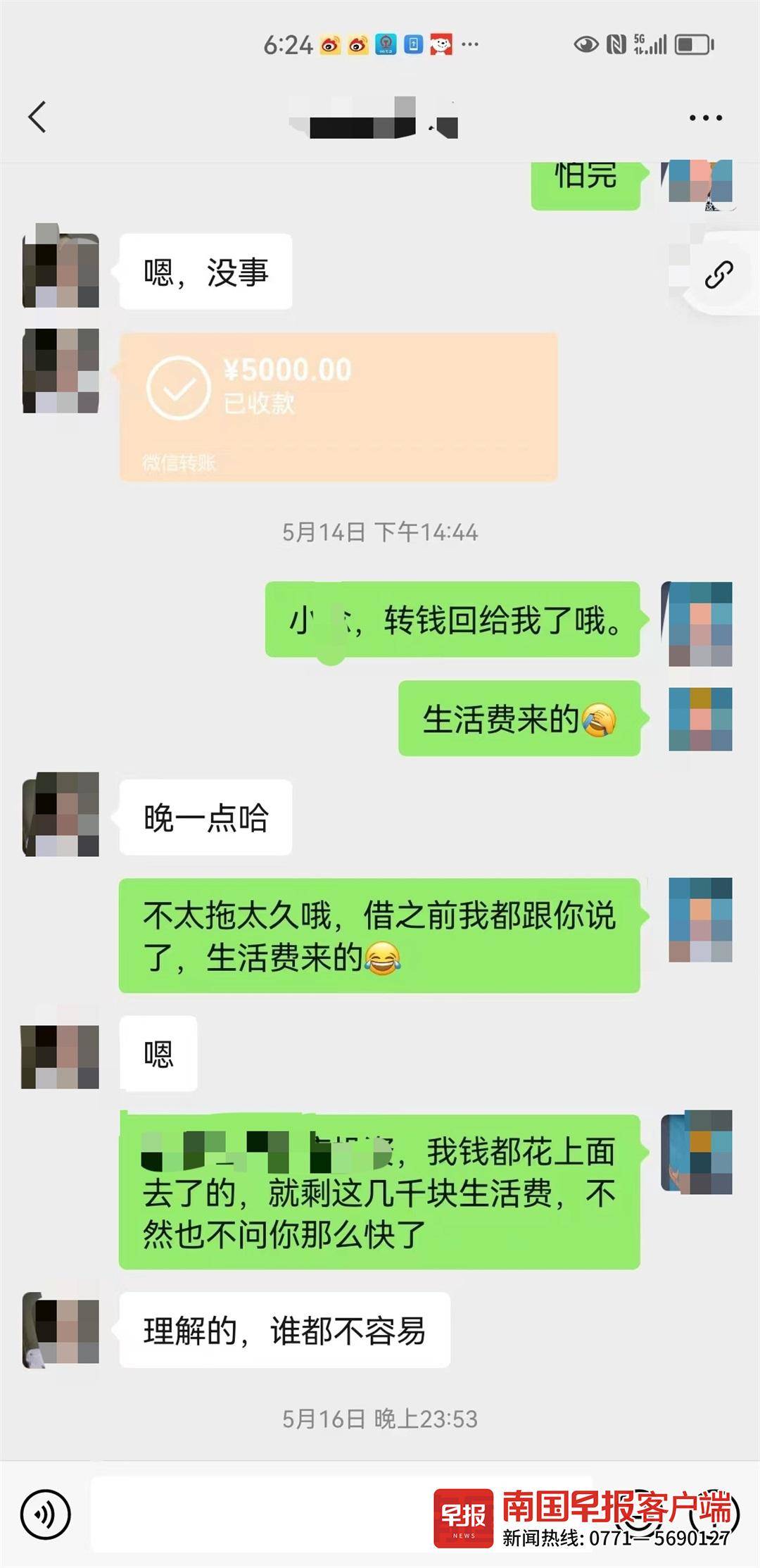 李女士和黄女士原是同事,黄女士住凌云县。去年5月11日,黄女士以信用卡过期周转为由,向李女士借款5000元,承诺次日偿还。李女士同意后,通过微信向黄女士转账5000元,对方没写借条。然而,黄女士逾期未还款。