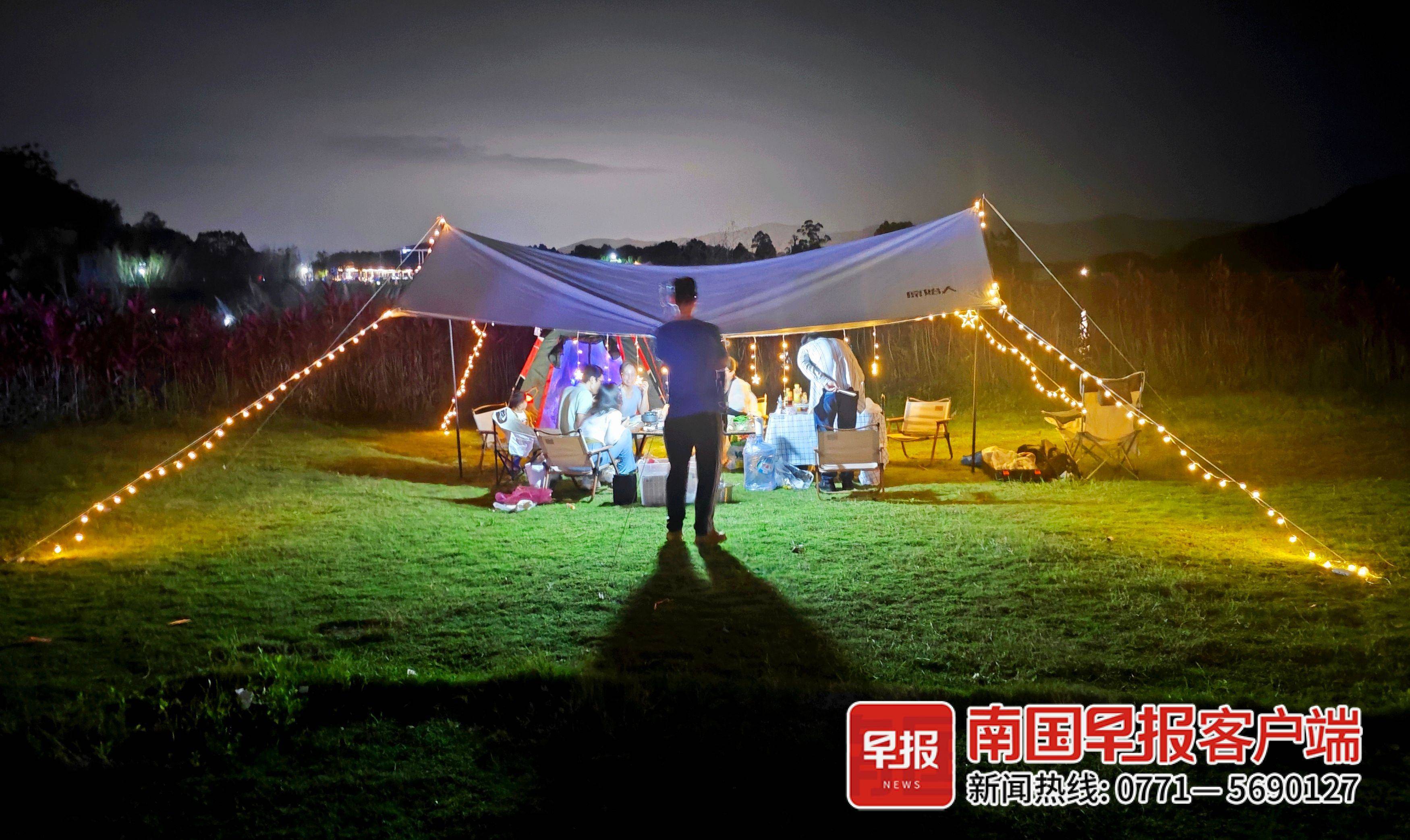 ▲市郊的一处露营地里,市民享受浪漫之夜。