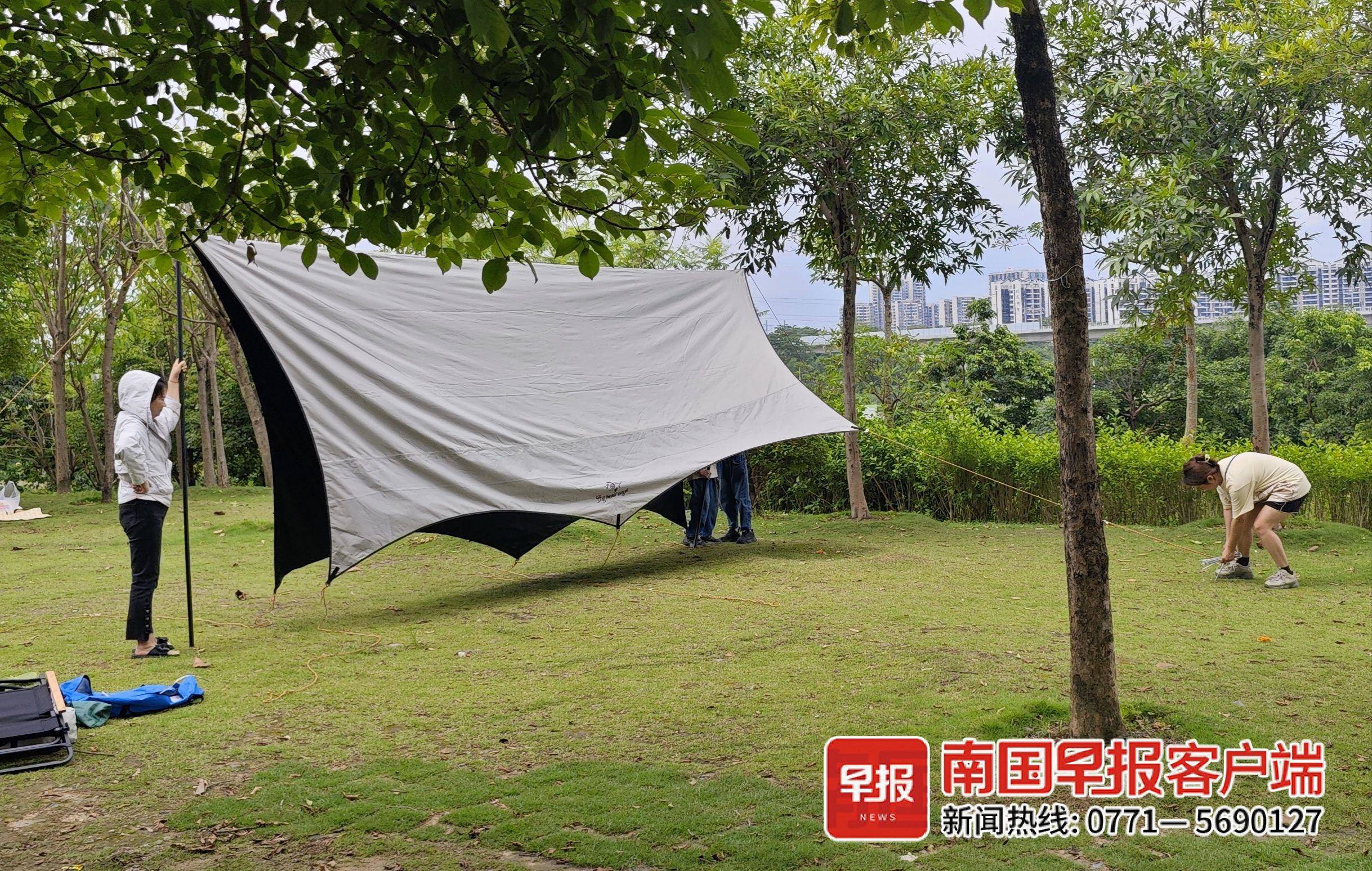 ▲市民搭起天幕。本文图片均为南国早报全媒体记者何定坚摄