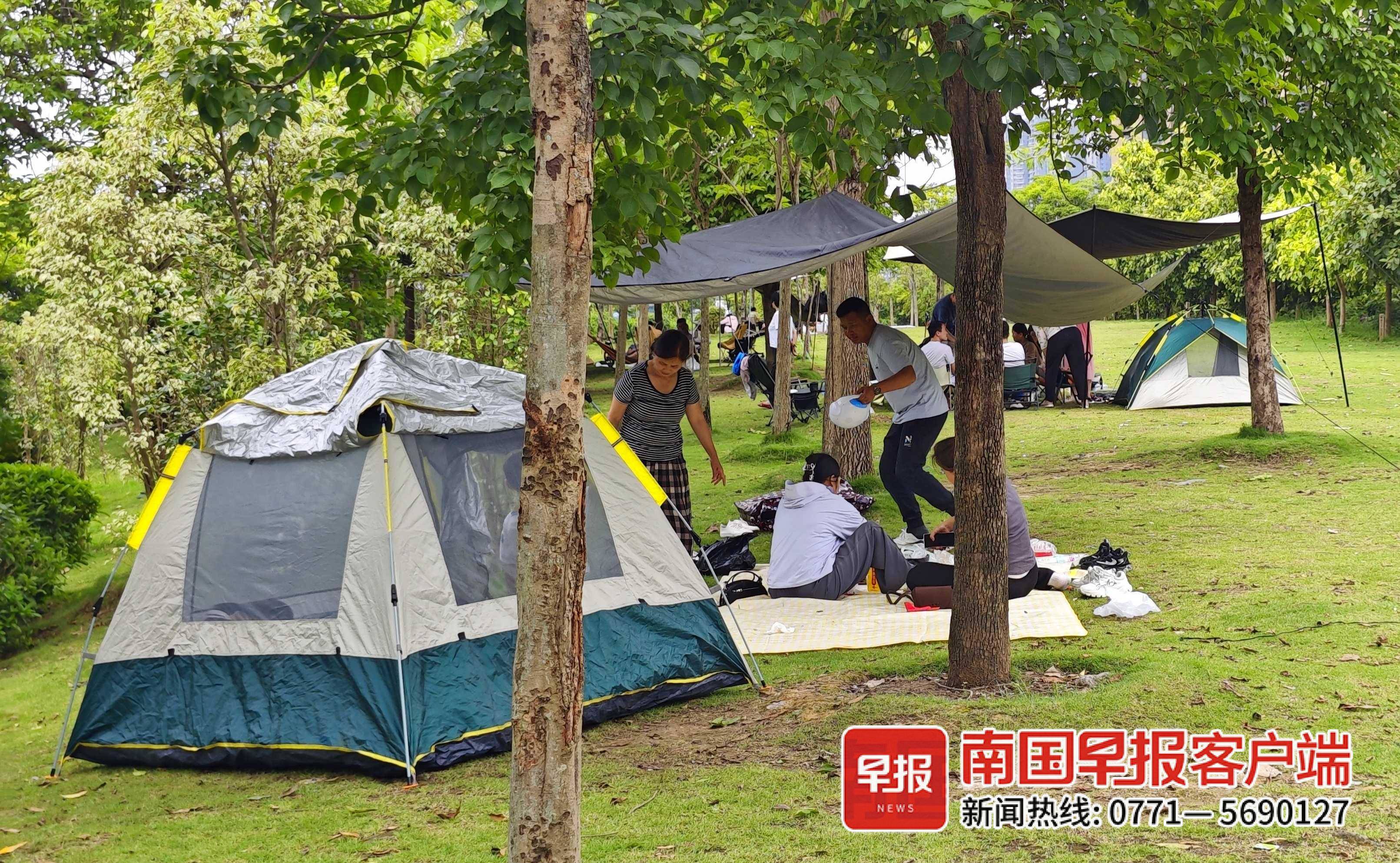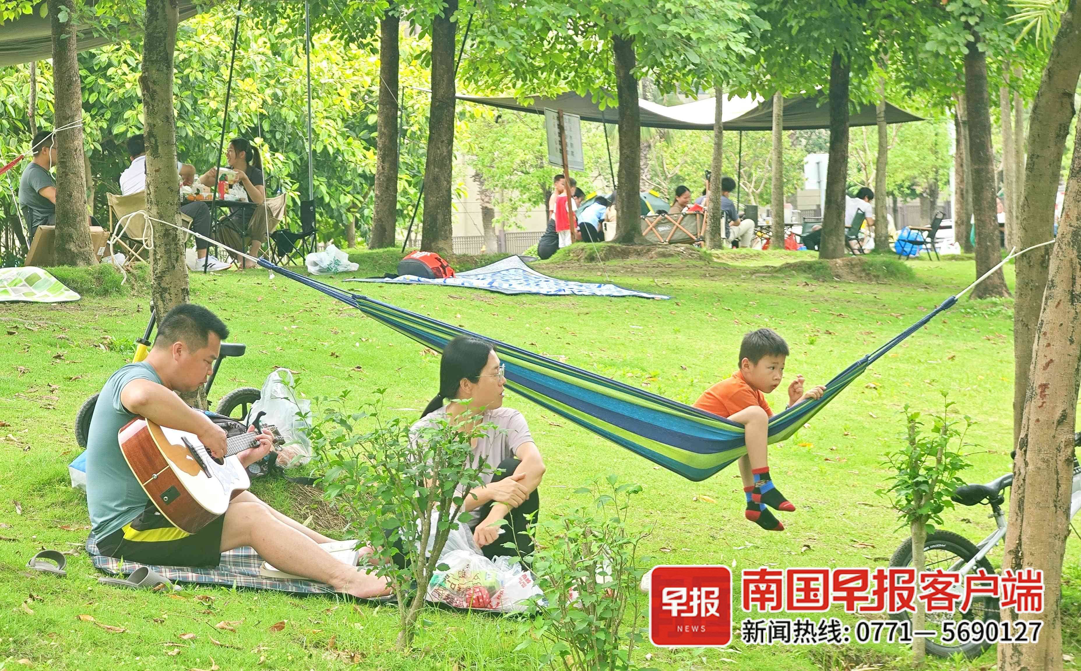 这个“五一”假期,很多市民没有出远门旅行,而是在南宁市各大公园、邕江两岸等地休闲度假,约上三五好友,搭起帐篷天幕,围坐草地,惬意享受家门口的“诗和远方”。