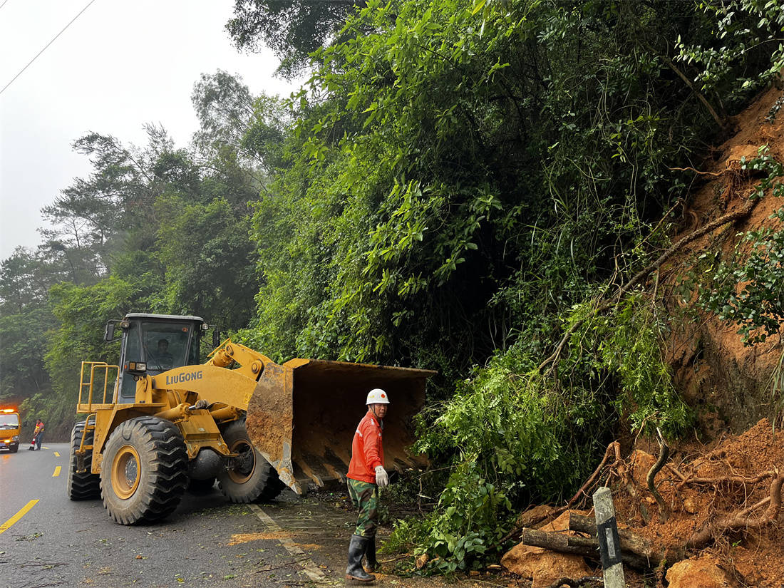 受连日强降雨袭击,玉林境内多条国省干线公路发生不同程度损毁和山体塌方、路树倒伏、水漫路面等险情,影响群众生产生活和出行安全,玉林公路部门迅速组织工作人员开展抢险工作。