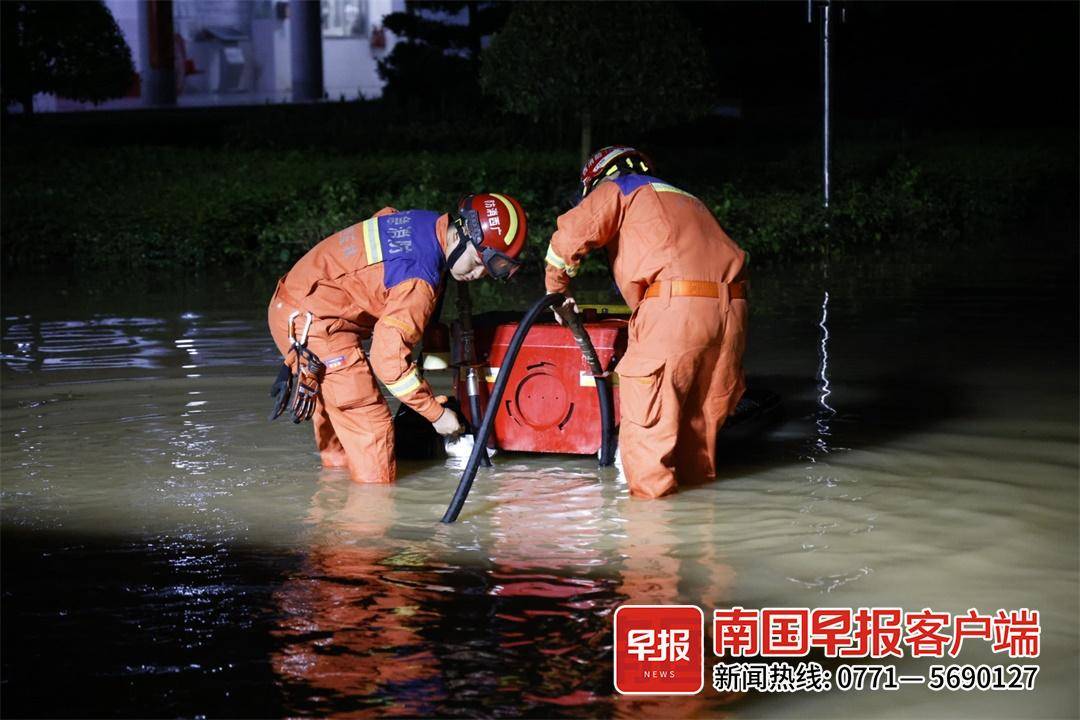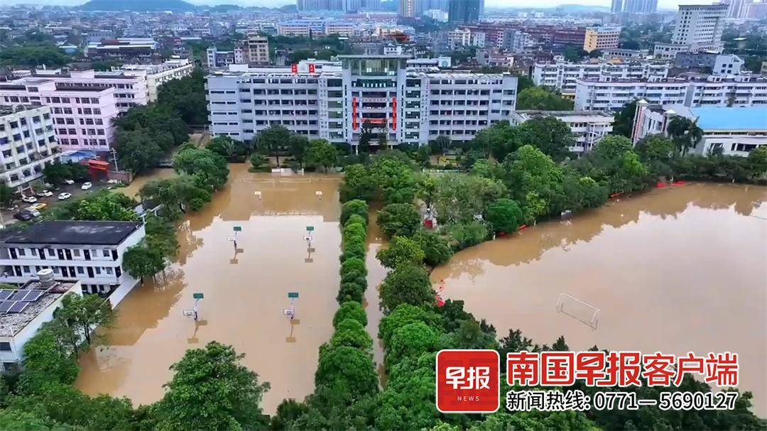 ▲玉林市第一中学积水严重。本文图片均为消防提供