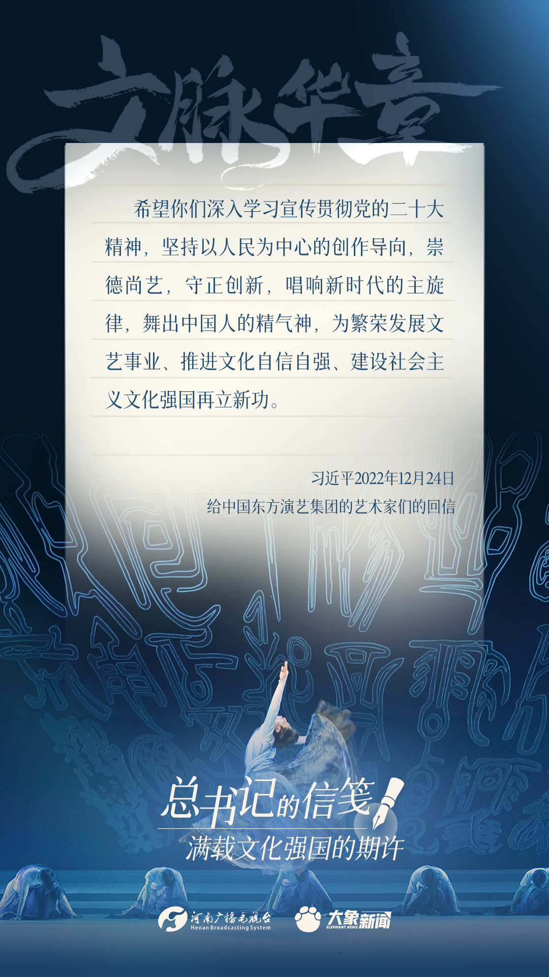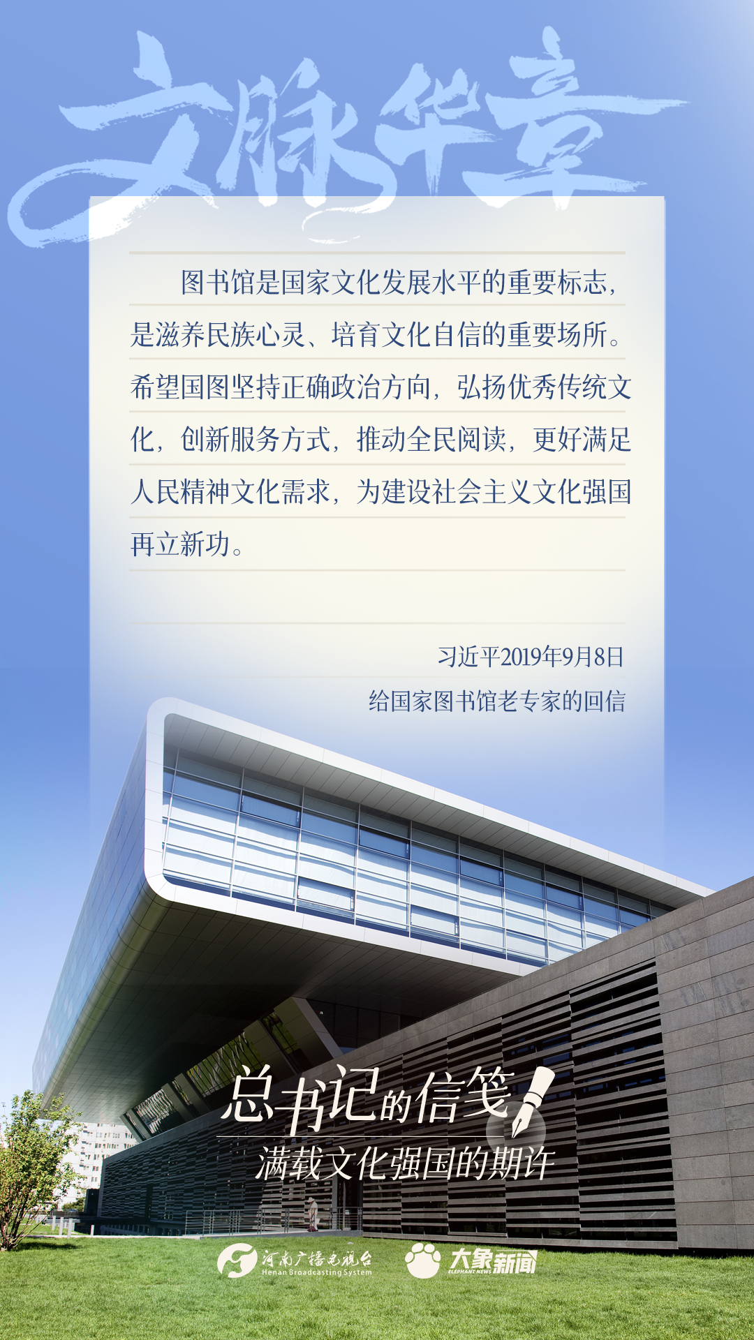 党的十八大以来,习近平总书记多次以书信的方式,同奋战在建设文化强国一线的干部群众、专家学者以及各行各业各界人士亲切交流,一封封信笺,传达关切、鼓励与厚望。